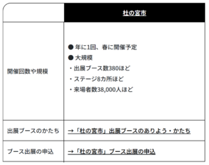 次に「ブース出展の申込 →「杜の宮市」ブース出展の申込」ページの中ほどにある