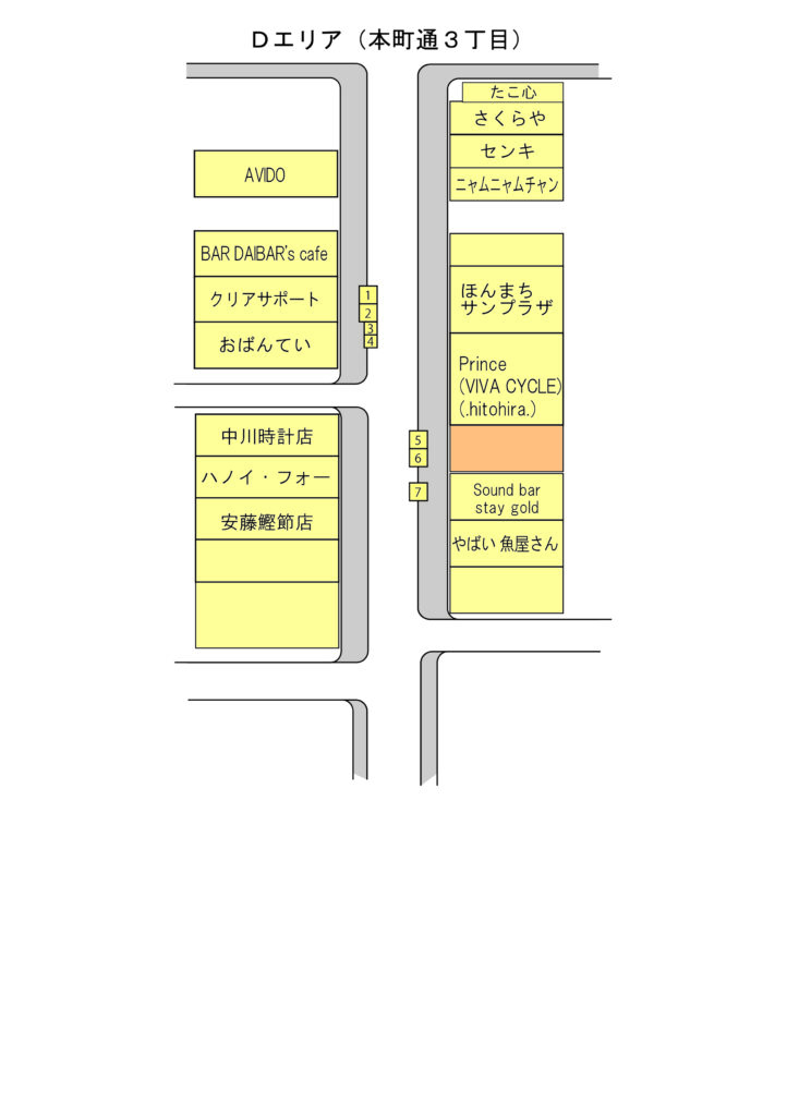 - 本町アーケード内(本町通2丁目、3丁目、4丁目)の物販ブースはテント不要です。