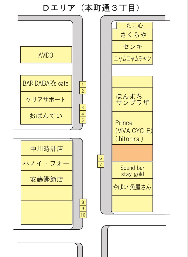 - 本町アーケード内(本町通2丁目、3丁目、4丁目)の物販ブースはテント不要です。