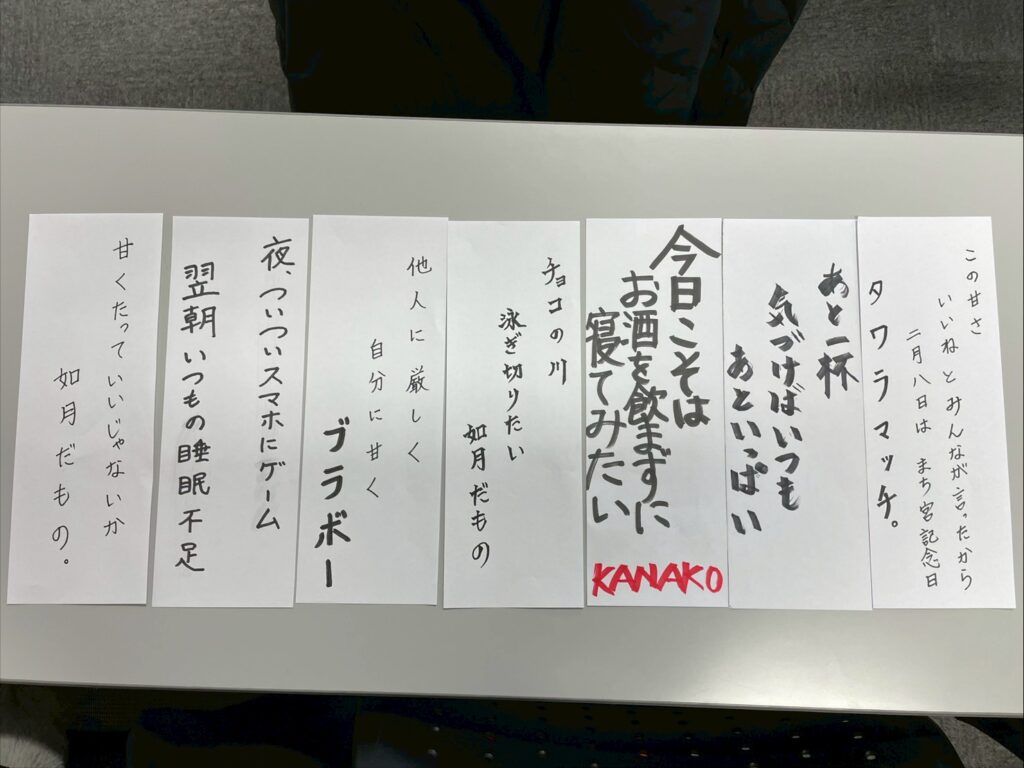 当日は、自分の「甘え」や「自分への甘やかし」を一句(五・七・五など)にして短冊に書き、展示するコーナー「甘い告白〜I’m Sw e e t To Me!〜」を設置します。