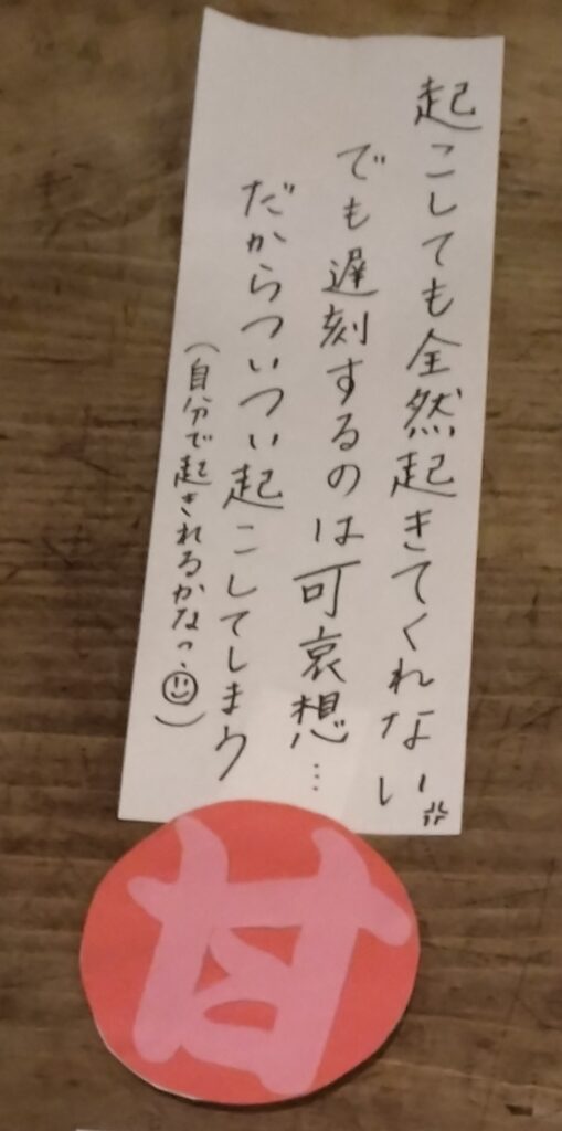 ついつい起こしてしまう(自分で起きれるかな?)