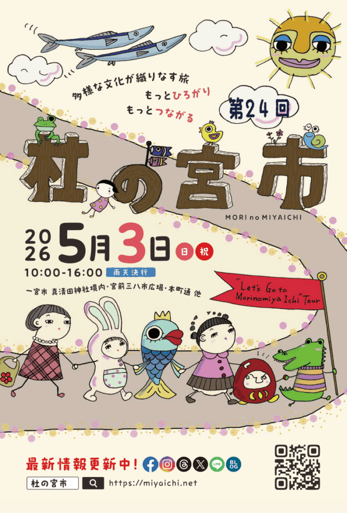 今年開催される「第24回 杜の宮市」のポスター・ポストカードを公開いたします。